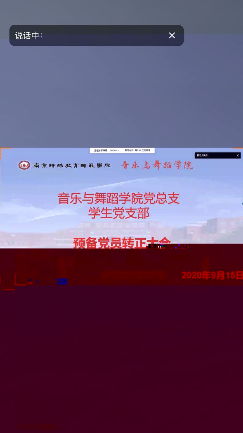 2020年9月15日下午7點,菠菜担保论坛大全學生黨支部召開了關于1701餘曦、 1705雷建同志的線上預備黨員轉正會議 。本次大會由陸心怡老師主持召開,參加此次會議的有菠菜担保论坛大全黨總支副書記黃珏老師、團總支書記笪笑老師,學生黨支部書記徐慧娟老師,學生黨支部宣傳委員劉振元老師及支部正式黨員和預備黨員。