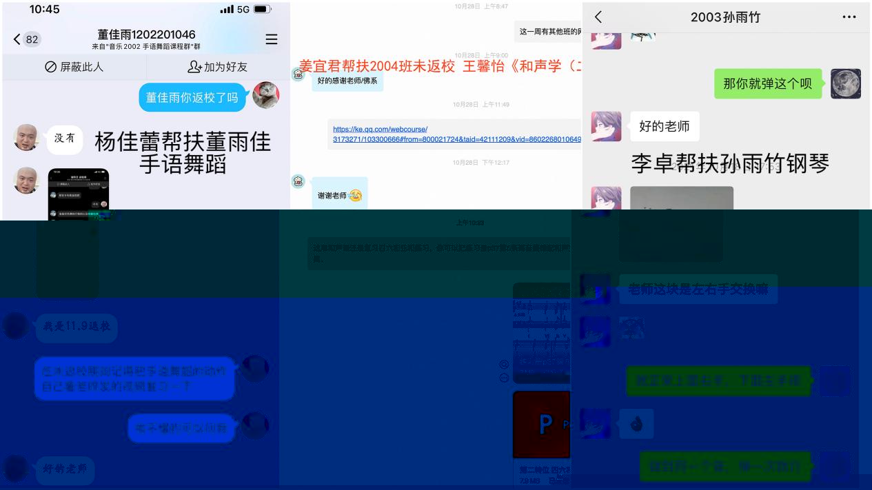 菠菜担保论坛大全成立了一支由十餘名教師組成的線上教學服務工作組,對未返校學生線上教學的各個環節進行精準服務。教師通過多種方式督促和督查學生參與線上學習,随時觀察學生的學習狀态,留出更多時間互動,解答疑點難點。為保證線上線下教學等質同效,音舞院督導組成員也通過在線聽課、閱覽教學資料等方式,實現線上教學檢查指導和質量監控有機結合。
