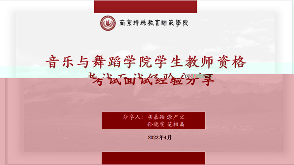 恰逢五四,奮進正當時。為使菠菜担保论坛大全2019級同學,以及即将準備的大一大二同學,更全面地了解教師資格證考試并順利通過考試,我們學院特别邀請已經考過教資的學生黨員胡嘉穎、孫曉雯、塗嚴文、範相晶分享她們的教資學習經驗。開展“教師資格考試面試經驗分享會”活動于4月7日17:00在線上舉辦。四位同學以小學、初中、高中每個學段的自身特色作為分享的切入點,總結并分享他們在教育知識與能力、綜合素質、音樂學科知識與教學能力,複習過程中的經驗與感悟。音樂與舞蹈、19級輔導員吳林烜旁聽并予以指導。