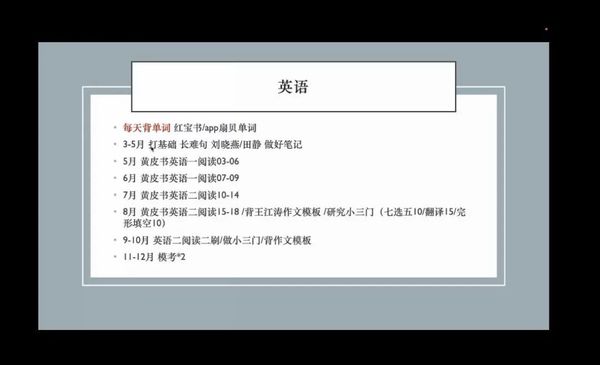 然後,1802班的盧萍同學進行經驗分享。盧萍同學就自身狀況、目标院校、專業選擇、學習方法等方面進行了詳細說明。她根據未來選擇現在的想法,也為大家提供了另一種考研思路。她認為考研的規劃性非常重要,個人的狀态關乎着學習效率,注意學習的節奏性,狀态好就要多學點,争取效率最大化,狀态不太好就可以适當休息一會,調整好學習狀态再繼續,不能盲目一味的蠻幹。