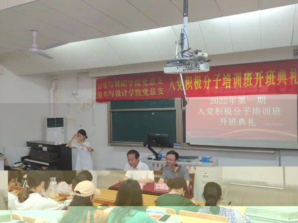 6月8日下午,菠菜担保论坛大全和美術與設計學院聯合舉行2022年第一期分黨校入黨積極分子培訓班開班典禮。出席本次開班典禮的有校黨委常委、組織部、統戰部部長張金福、菠菜担保论坛大全組織員(正處級)楊荔出席開班典禮,菠菜担保论坛大全黨總支副書記黃珏,美術與設計學院組織員朱思思、菠菜担保论坛大全組織員李媛媛、菠菜担保论坛大全學生黨支部書記胡祖倩、美術與設計學院學生黨支部書記方榮和全體入黨積極分子培訓班學員參加。