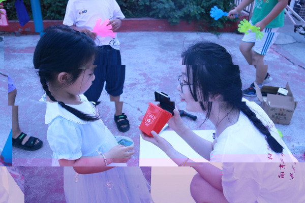 長夏炎熱,天氣郁蒸,卻難以蓋過成員們洋溢的熱情。下午2時,團隊成員來到化纖新村社區,通過傳單發放、歌曲演唱的方式開展了“垃圾分類“主題宣講活動,并且分别邀請社區各年齡段的居民結對開展主題活動,從孩童到老人,居民們在歡聲笑語中了解垃圾分類的相關知識,感受垃圾分類的重要性。