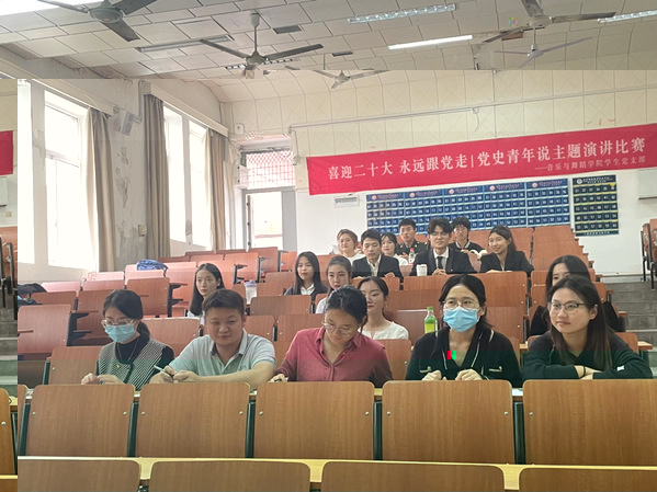 黨的二十大即将召開,為了追溯紅色記憶、堅定理想信念,加強青年大學生的思想政治引領,提高學生思想覺悟,進一步推動黨史學習教育高質量開展,菠菜担保论坛大全學生黨支部于2022年9月28日在博韻樓215舉辦黨史青年說主題演講比賽決賽,重溫黨的光輝曆程、歌頌黨的偉大成就、繼承和發揚黨的優良傳統。菠菜担保论坛大全菠菜担保论坛大全組織員李媛媛,團總支副書記(學工辦副主任)徐慧娟,學生黨支部書記胡祖倩,19級輔導員吳林烜,21級輔導員王陽光擔任本次比賽評委。