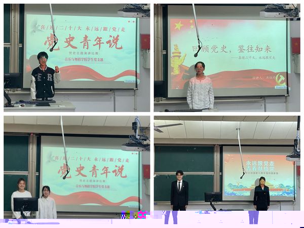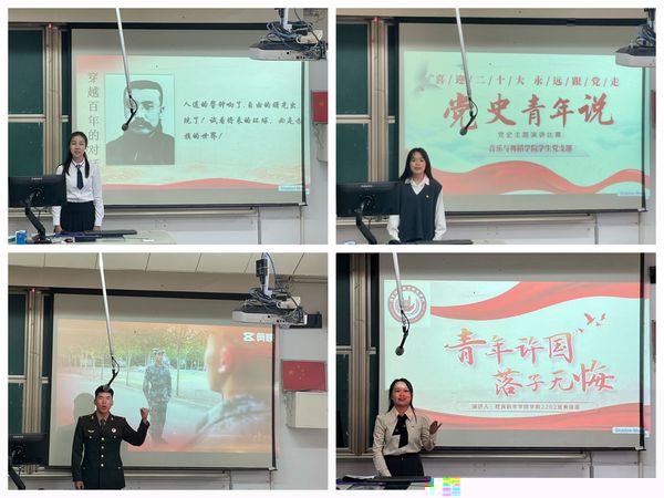 《以青春之名,續寫時代華章》、《風雨百年正青春,黨的光輝照我心》、《追憶峥嵘黨史,奮進嶄新時代》等11個主題演講,同學們深刻表達了他們對祖國的滿腔熱忱,道出了我輩青年對祖國的深厚情感,展示了他們活力四射的青春風采。充分展現了當代青年奮發有為的精神風貌,主動擔當起供養和傳承革命精神的決心和信念。