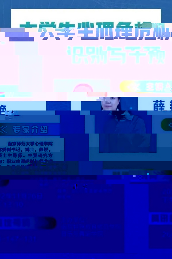 為切實推進心理健康教育工作,營造積極健康的校園心理文化氛圍,提高應對學生心理危機的幹預能力,菠菜担保论坛大全于11月26日特邀南京師範大學心理學院薛豔教授開展“大學生心理危機識别與幹預”講座,學院輔導員、全體班主任、各班心理委員以及部分學生代表聆聽了講座,講座由學院黨總支書記蔣科星主持。