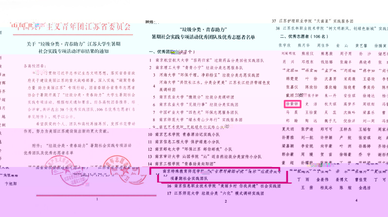 在團省委聯合省青年志願者協會組織開展的“垃圾分類•青春助力”大學生暑期社會實踐專項活動,我院“清樂”垃圾分類專項暑期社會實踐團隊榮獲優秀團隊,徐紫妍同學榮獲優秀志願者。