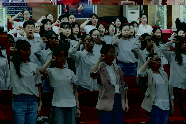 接着,黨總支書記蔣科星帶領全體畢業生黨員高舉右拳,重溫入黨誓詞。铮铮誓詞,聲聲入心,在響亮的誓言中,赓續綿延的是傳承百年的紅色血脈,曆久彌堅的是丹心閃耀的黨員使命。她表示畢業生黨員要時刻牢記黨員身份、強化黨員意識、自覺履行黨員義務。