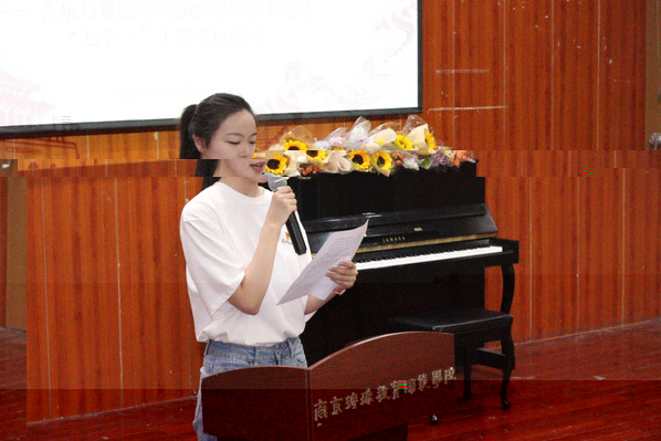 緊接着,優秀畢業生黨員徐紫妍同學作最後一次發言,她回望自己的大學四年,自己從懵懂走向成熟、從無知走向睿智、從淺薄走向充實,表示她将繼續發揮畢業黨員先鋒模範作用,永遠銘記并踐行“博愛塑魂”的校訓,在以後的人生中發熱發光,為母校争光添彩。