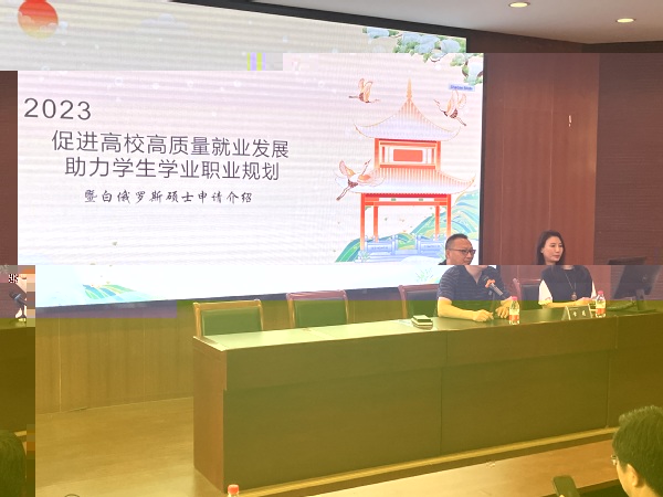 章教授向同學們分析了近年來我國留學簽證獲批趨勢,并重點介紹了與該校合作的白俄羅斯國立文化藝術大學的具體内容。她從就業形式、就業壓力等方面說明白俄羅斯留學優勢 ,如性價比高、學制短、學曆互認、教育水平高、就業前景好、社會保障好等。章教授對同學們所關心的住宿、學制、學費等多方面問題做出詳細解答。