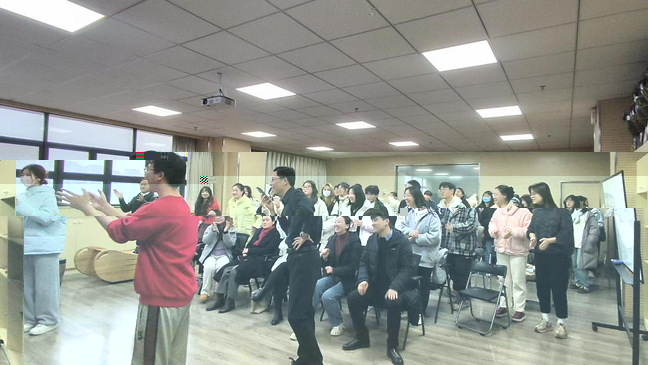 呂曉彤教授于1993年赴日留學,1995年起從事中日自閉症教育研究,在音樂治療領域有着豐富經驗和深厚造詣。呂教授談到音樂治療在特殊兒童教育領域的應用是非常有代表性的。因為在特殊兒童的教育中,由于他們身心的特殊性,與他們建立關系不是一件容易的事。但音樂作為一種低侵入性,并且易于接受的交流方式,可以幫助我們與特殊兒童建立連接,也可以幫助他們表達自己的想法和情感。因此音樂治療對于特殊兒童具有重要的意義。同時向同學們簡單介紹了特殊兒童音樂治療的作用,如增強溝通能力和表達方式、促進認知和學習能力、緩解情緒和心理問題、增強社交能力和合作精神、培養自信心和自尊心等。呂教授告訴大家音樂治療在特殊兒童教育領域的應用、目的不在于音樂本身的學習或音樂能力的提升,更多傾向于借助音樂這一媒介,通過專門設計的音樂活動和體驗,使他們在音樂中獲得的身體、心理、認知、情緒等改善,延伸到日常生活中,從而提高生活質量。