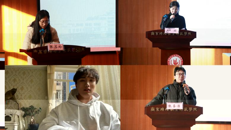 随後,實習生代表張蘇玲、楊恒、張聖潔和姜羽四位同學分享了自己本次實習的經驗和經曆,其中楊恒同學線上分享了初中實習的經曆,姜羽同學認為需加強自身的專業能力,張蘇玲和張聖潔同學分别分享了在小學和音樂治療機構的實習經曆。