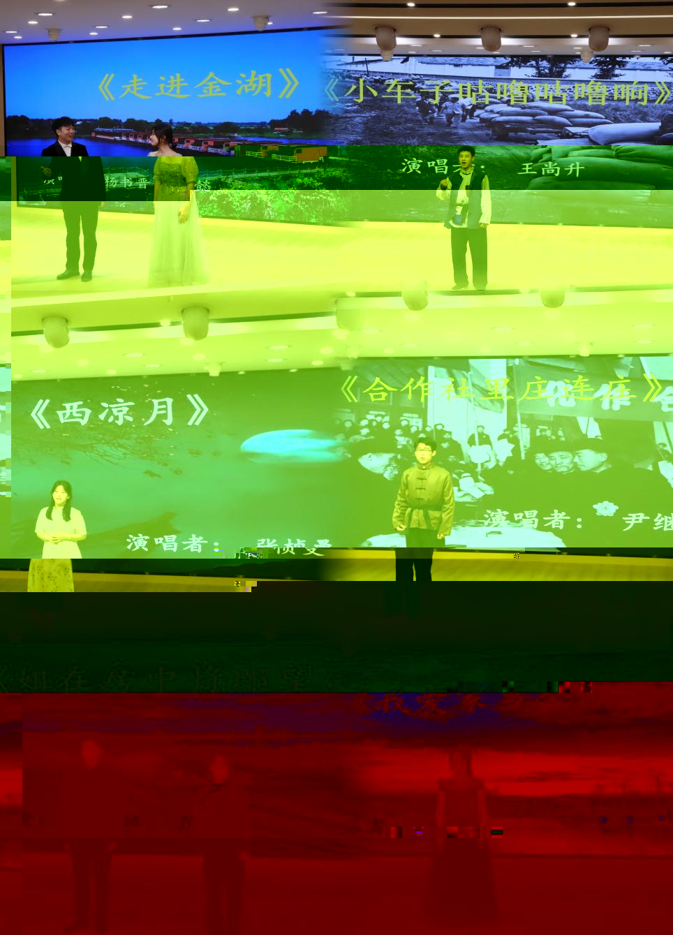 本次音樂會在溫震老師的悉心指導下順利舉辦,同學們以不同演唱形式完成聲樂作品,音樂會首先以一首創作歌曲《走進金湖》帶領觀衆走進金湖,領略“金湖秧歌”的魅力,緊接着同學們帶來各種體裁的“金湖秧歌”,《五隻小船》輕松活潑、生動有趣的演唱令人目不轉睛, 男生合唱《打硪号子》讓人感受到勞動的氣息,最終在唯美呈現的女聲獨唱《金湖是個好地方》的歌聲裡,結束了本場音樂會,讓現場觀衆“沉浸式”感受了非遺文化的獨特魅力。在同學們精彩的節目中,非遺文化的珍貴得到完美展現,同時也能夠從中感知傳統音樂的博大精深。