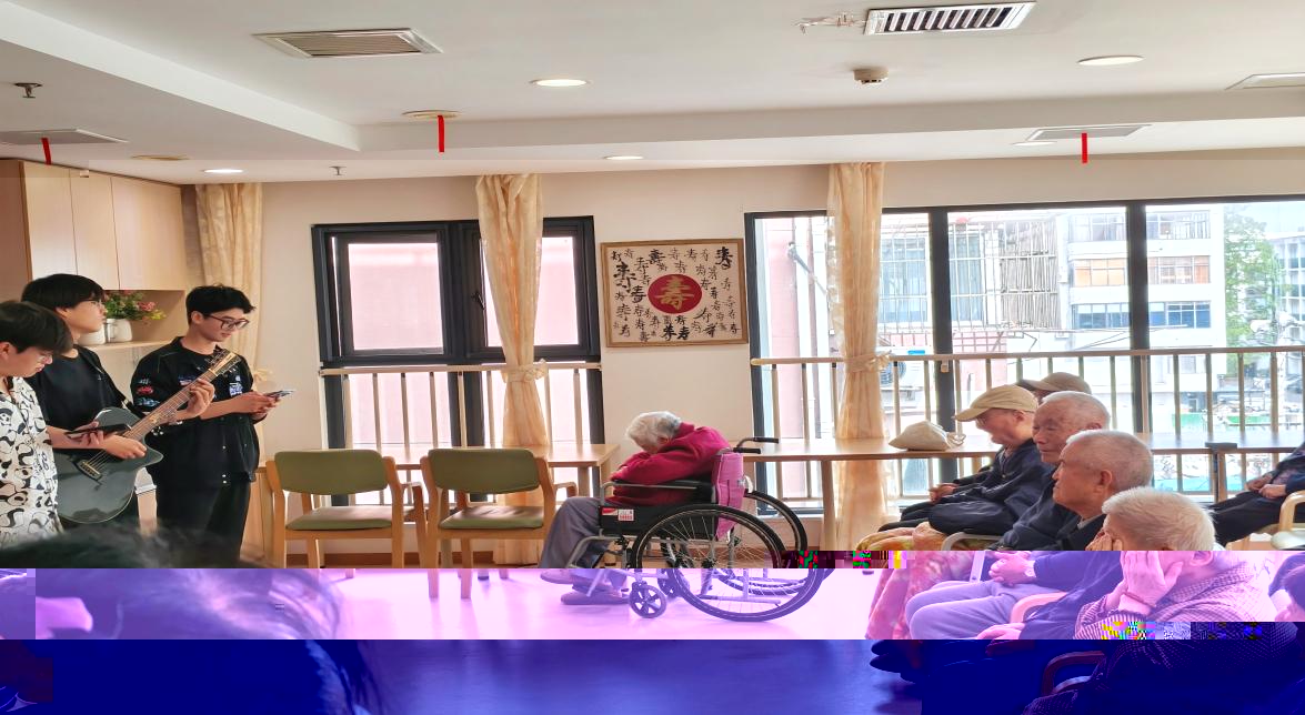 頤養中心内,青春與暮年在此溫柔相擁。同學們化身傳遞溫暖的志願者,以熱情的表演為老人們營造了滿溢溫暖的藝術氛圍。婉轉歌聲如潺潺溪流,淌過歲月溝壑,老人們眼角的笑意被熱情點燃,幸福在臉上層層暈染。